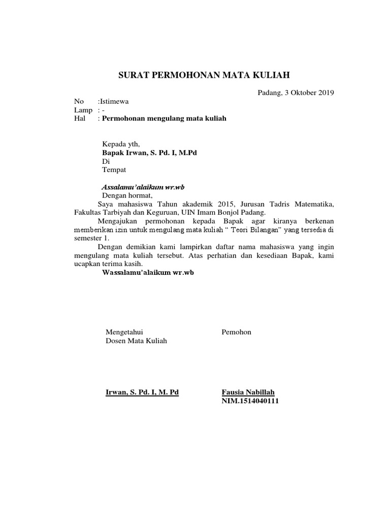 Surat Permohonan Pengajuan Mata Kuliah Pdf